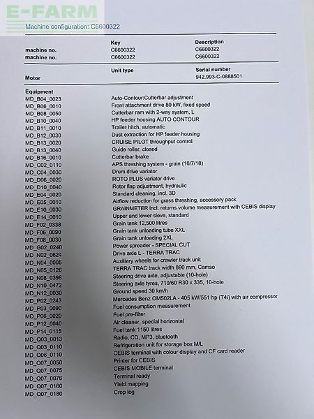 | Typ stroje | Kombajn |