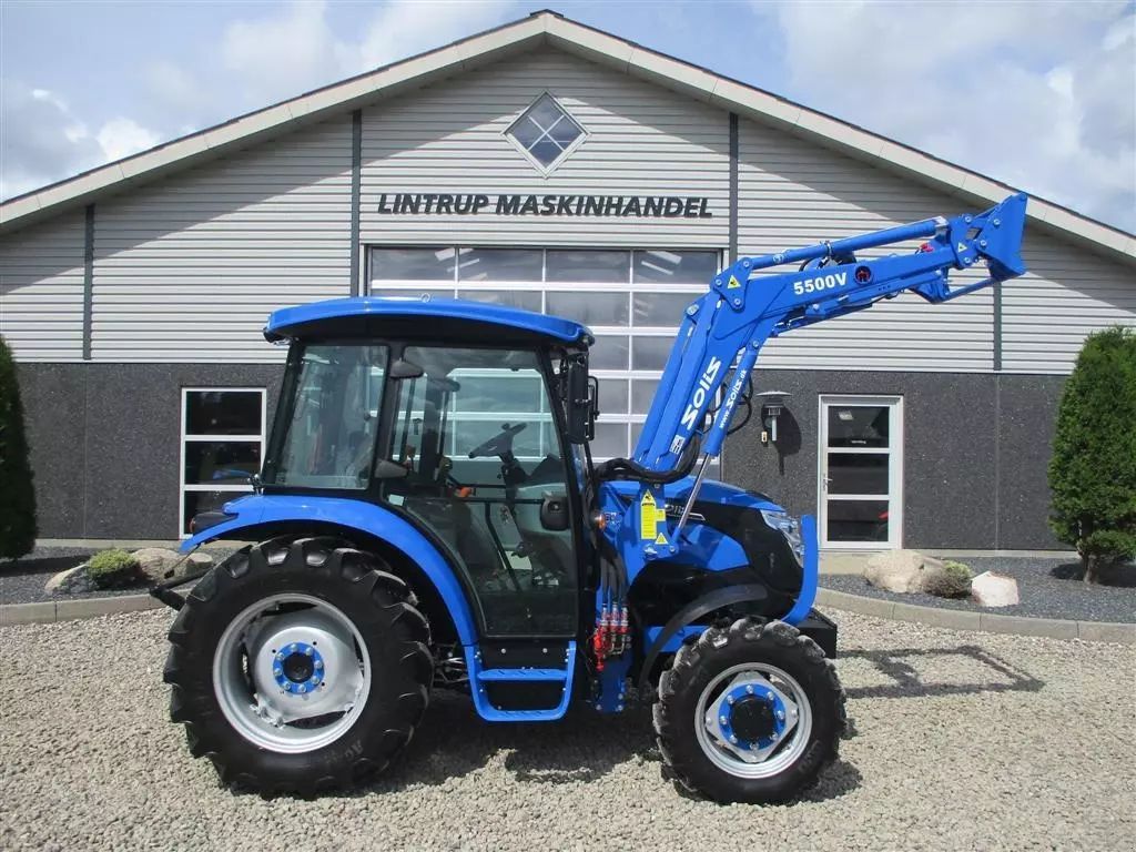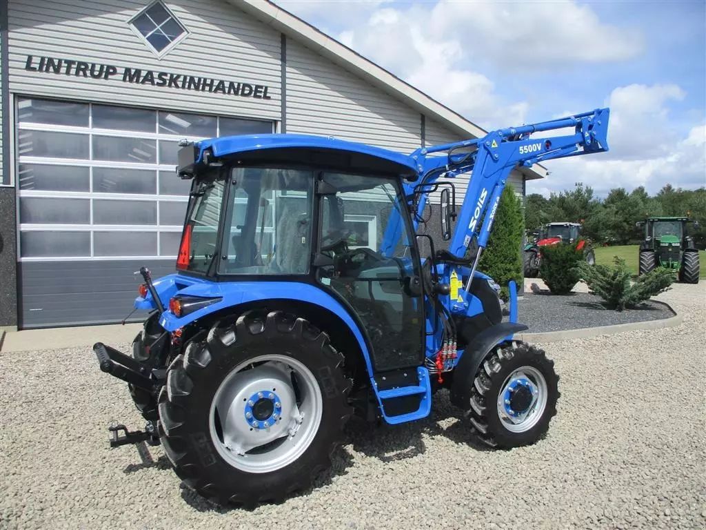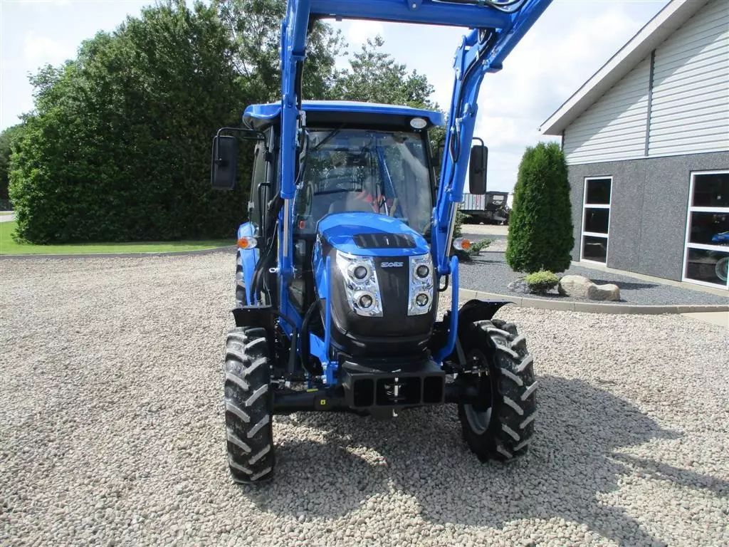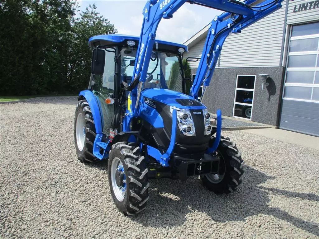 Solis 50 fabriksny traktor med 2 års garanti, lukket kabine med klima anlæg, og fuldhydraulisk frontlæsser på