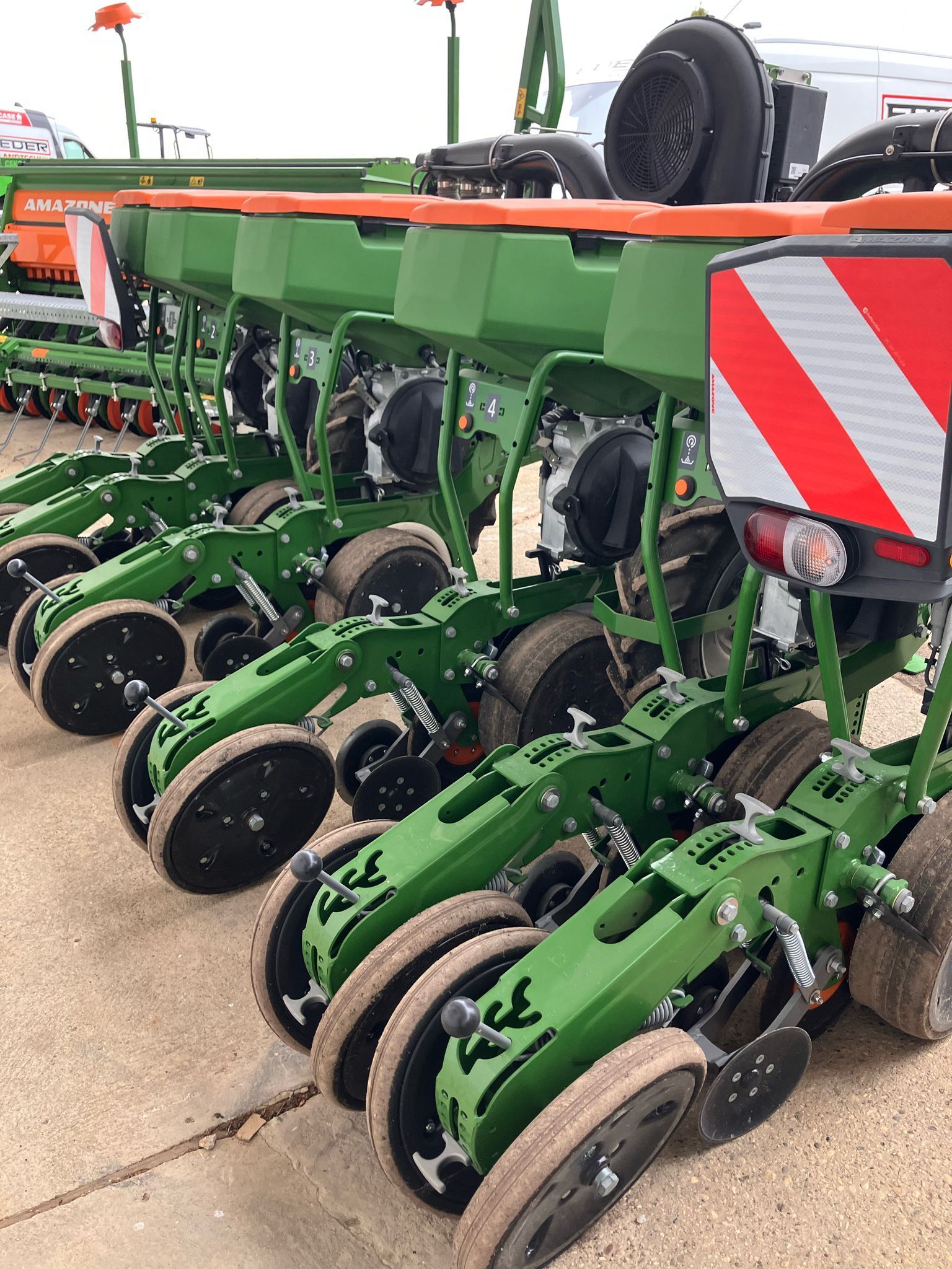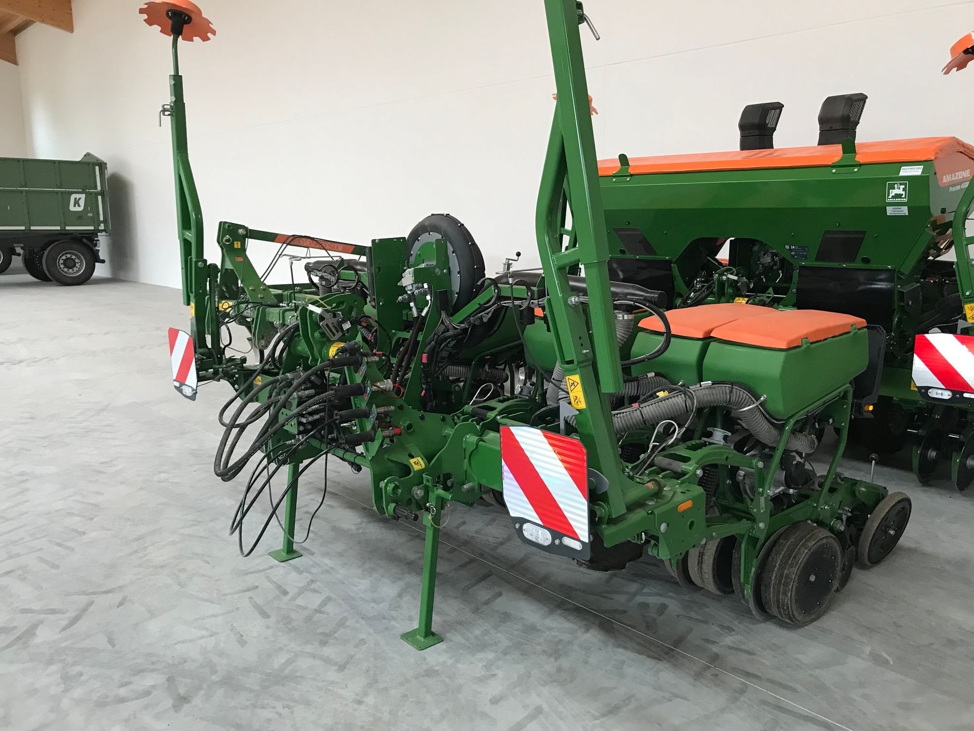 | Freitext | Bj. 2020 / neuwertiger Zustand bestellte Fläche: 100 ha Sektion Controlfähiges Gerät teleskopierbarer Rahmen Precea 4500-2 Reihenabstand 75 cm - 6 Reihen kurzer 3-Punkt-Anbaurahmen Fahrwerk zwischen den Saatreihen (6.5/80x1 AS) hydraulischer Gebläseantrieb Komforthydraulik für ISOBUS hydraulische Transportsicherung Saatgutbehälter 55 l PreTeC-Mulchsaatschar mit mechanischem Schardruck ElectricDrive-Vereinzelungsantrieb Furchenformer 16 mm, HM Fangrolle 16 mm Abstreifer für Fangrolle Breite Tiefenführungsrollen 115 mm Abstreifer für breite Tiefenführungsrollen 115 mm Breite Andruckrollen 50 mm glatt Scheibenzustreicher Vereinzelungsscheibe grün - Mais 5,0 mm LED-Beleuchtung für die Straßenfahrt nach vorne Standardbeleuchtung für die Straßenfahrt nach hinten ISOBUS-Maschinensteuerung Standard-Elektronik PreTeC-Mulchsaatschar Optogeber zur Saatgutüberwachung Radarsensor international Analoger Arbeitsstellungssensor Elektronische Saatgut-Abstreiferverstellung Leermeldesensor |