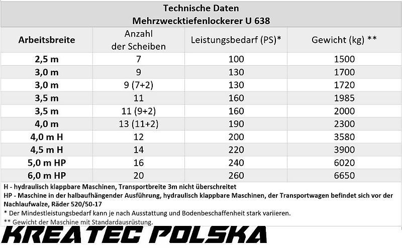| Modell | Mehrzwecktiefenlockerer U 638 / Tiefenlockerer Breiten von 2,5 m bis 6 m |