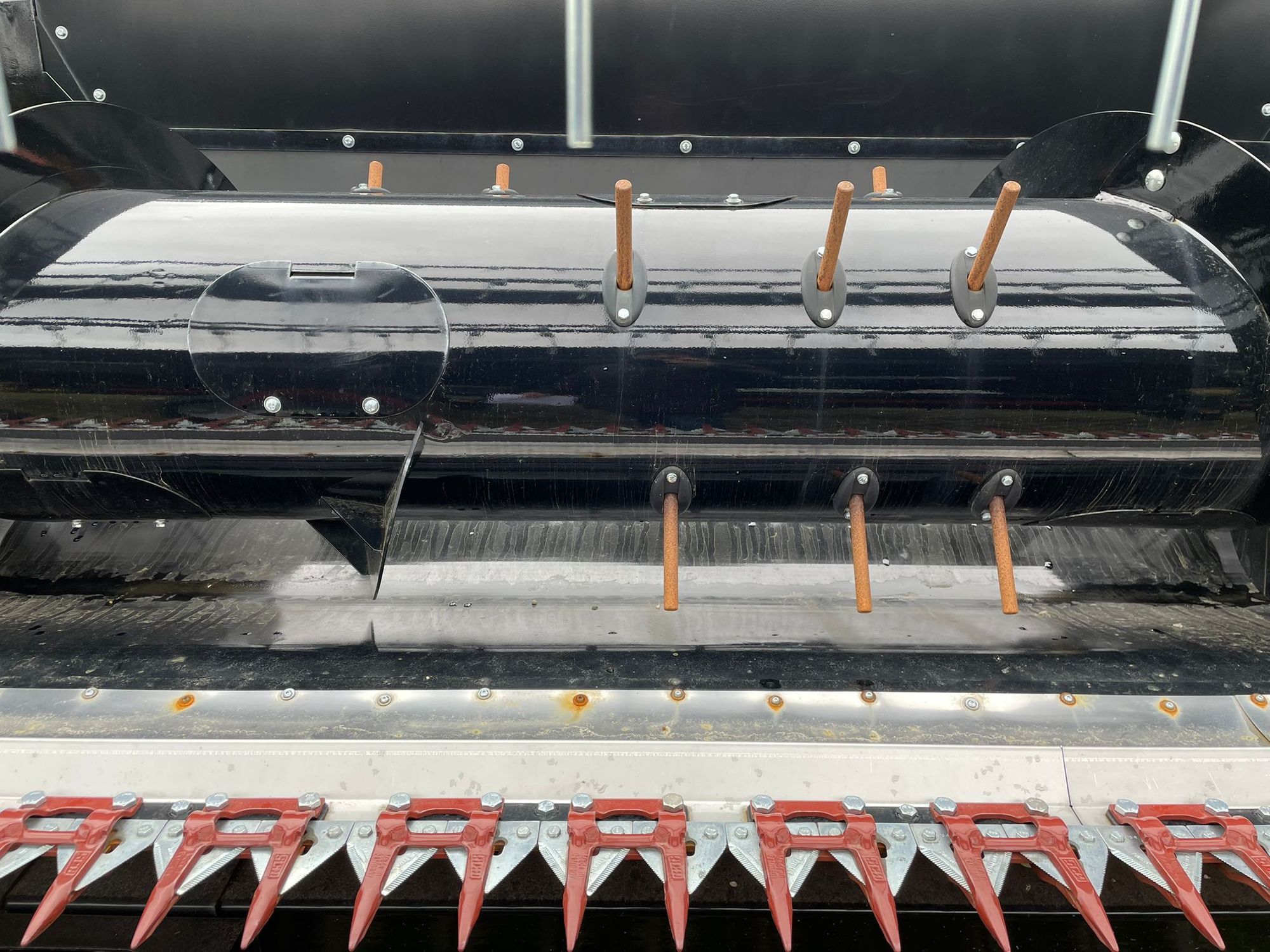 | Freitext | Engine – CUMMINS QSL 9 Engine power – 249 kW/334 hp Hydraulic tilt cam reverser controlled from the cab Wide stone trap Threshing drum dia. - 1 pc The diameter of the threshing drum is 800 mm The width of the threshing drum is 1.38 m. Threshing drum rotation range 335-1050 rpm. Number of sprigs - 10 pcs. The angle of the sub-drum is 1300 The gap between the drum and the under-drum, controlled from the cab. Quantity of key shakers - 5 pcs. The length of the key shakers is 4.2 m, the area is 6.30 m2 Shakers of seven stages Bunker capacity - 9000 ltr. Unloading auger: unloading height - 4.3 m; unloading speed - 90 l/s Bunker hydropulsators Air fan-centrifugal Air fan rotation range 367-992 rpm Air fan control from the cabin Two-stage sieve cleaning system, electrically adjustable. The area of the sieves is 5.2 m2 Two-speed shredder-spreader: 1800 rpm, 3400 rpm Double, reversible knives, pcs. - 76 Mechanical spreader control Grain loss control system Adviser III is a computer information system with a touch, color 10" display. Shock-absorbing driver's seat, passenger seat Air conditioning Work lights, units: 8 Beacons, units: 2 Spherical rear view mirrors Fuel tank capacity - 510 liters. Fire extinguishers 2 pcs. Transmission - 3-speed electro-hydraulic control Front wheels - 800/65 R32 (30.5LR32) Rear wheels - 18.4 R24 Length - 8.85 m, width - 3.88 m, height - 3.94 m, (without mower) Mower Biso VX crop ranger trendline light 600 + cart for the Biso Profi 2-axle mower |