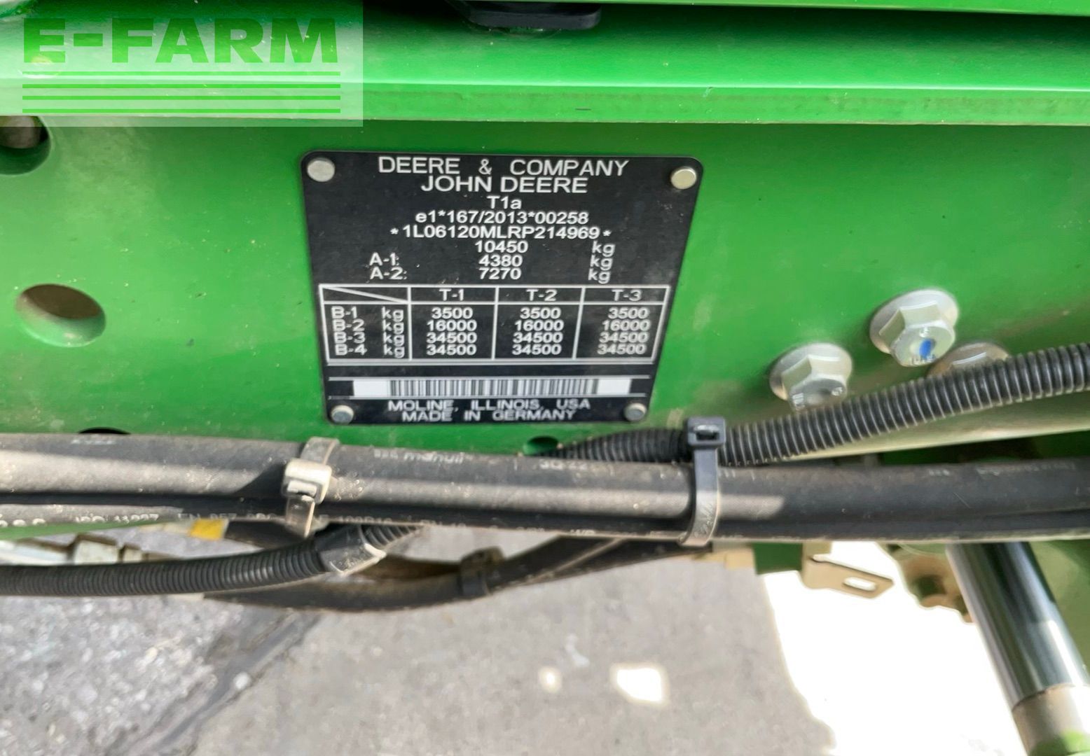 | Freitext | Mietrückläufer - sofort verfügbar! John Deere 6120M AutoPowr 40 km/h Kabine mit CommandArm, mit Federung Premium-Sitz luftgefedert Standard-Radio gefederte Vorderache TLS Mitas Reifen 540/65 R38 u. 480/65 R24 neu! hydr. Oberlenker hinten Stabilisierungsstrebe automatisch links Hydraulikpumpe 114 l/min 3 elektrische Steuergeräte hinten AutoTrac - Vorbereitung Bodenschutz für Kraftstofftank Sonnenschutzrollos vorne u. hinten Heckscheibenwischer mit Waschanlage hinten Falschenhalter Staufach links Wegfahrsperre mit codiertem Zündschlüssel Lederlenkrad Druckluftbremse 2-Leiter PowerFill-Bremse mit Hydraulikunterstützung Kotflügel vorne schwenkbar Drehstromgenerator 14 V / 210A Batterie-Stromkreisunterbrecher Beleuchtungspaket Premium - LED Wiederhol-Fahrscheinwerfer H4 am Kabinenpfosten Rundumleuchte autom. Anhängevorrichtung Außenbedienung für 3. Steuergerät, Hubwerk u. Zapfwelle hinten Hubkrafterhöhung u. verstärkte Hinterachse 10.450 kg höchstzulässiges Gesamtgewicht Frontkraftheber u. Frontzapfwelle Zusatz-Ölbehälter Load-Sensing Anschlüsse hinten iTec Basic Vorgewendemanagement elektr. Zwischenachssteuergerät 2x dw |