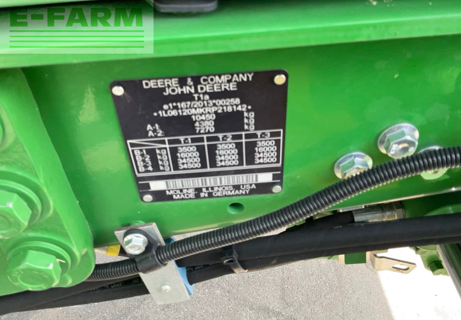 | Freitext | Vorführer - sofort verfügbar! John Deere 6120M AutoPowr 40 km/h Kabine mit CommandArm, mit Federung Premium-Sitz luftgefedert Standard-Radio gefederte Vorderache TLS Trelleborg Reifen 540/65 R38 u. 480/65 R24 hydr. Oberlenker hinten Stabilisierungsstrebe automatisch links Hydraulikpumpe 114 l/min 3 elektrische Steuergeräte hinten AutoTrac - Vorbereitung Kraftstofftank 205 l Bodenschutz für Kraftstofftank Sonnenschutzrollos vorne u. hinten Heckscheibenwischer mit Waschanlage hinten Falschenhalter Staufach links Staufach am Dach Wegfahrsperre mit codiertem Zündschlüssel Lederlenkrad Druckluftbremse 2-Leiter Hochleistungs-Hinterradbremsen PowerFill-Bremse mit Hydraulikunterstützung Kotflügel vorne schwenkbar Drehstromgenerator 14 V / 210A Batterie-Stromkreisunterbrecher Beleuchtungspaket Premium - LED Wiederhol-Fahrscheinwerfer H4 am Kabinenpfosten Rundumleuchte autom. Anhängevorrichtung Außenbedienung für 3. Steuergerät, Hubwerk u. Zapfwelle hinten Hubkrafterhöhung u. verstärkte Hinterachse 10.450 kg höchstzulässiges Gesamtgewicht Frontkraftheber u. Frontzapfwelle Zusatz-Ölbehälter Load-Sensing Anschlüsse hinten iTec Basic Vorgewendemanagement elektr. Zwischenachssteuergerät 2x dw Anbaukonsole für John Deere Frontlader Frontlader John Deere 603R mechanische Parallelführung Multikuppler EURO-Aufnahme mit hydr. Werkzeugverriegelung Laderfederung |