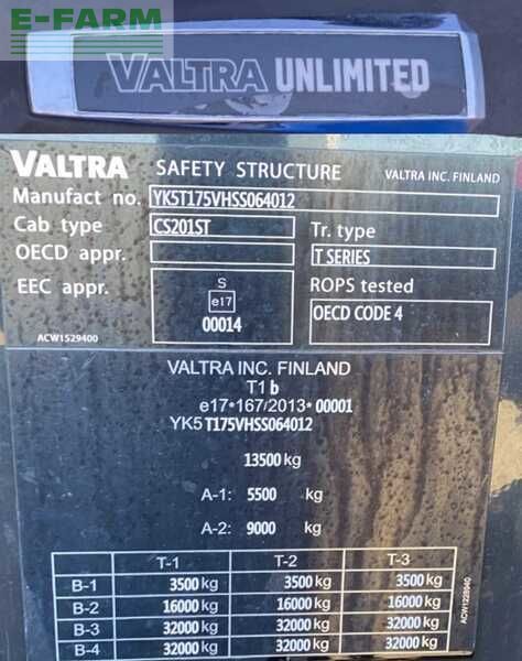Valtra t175/versu unlimited origine francaise endommagé