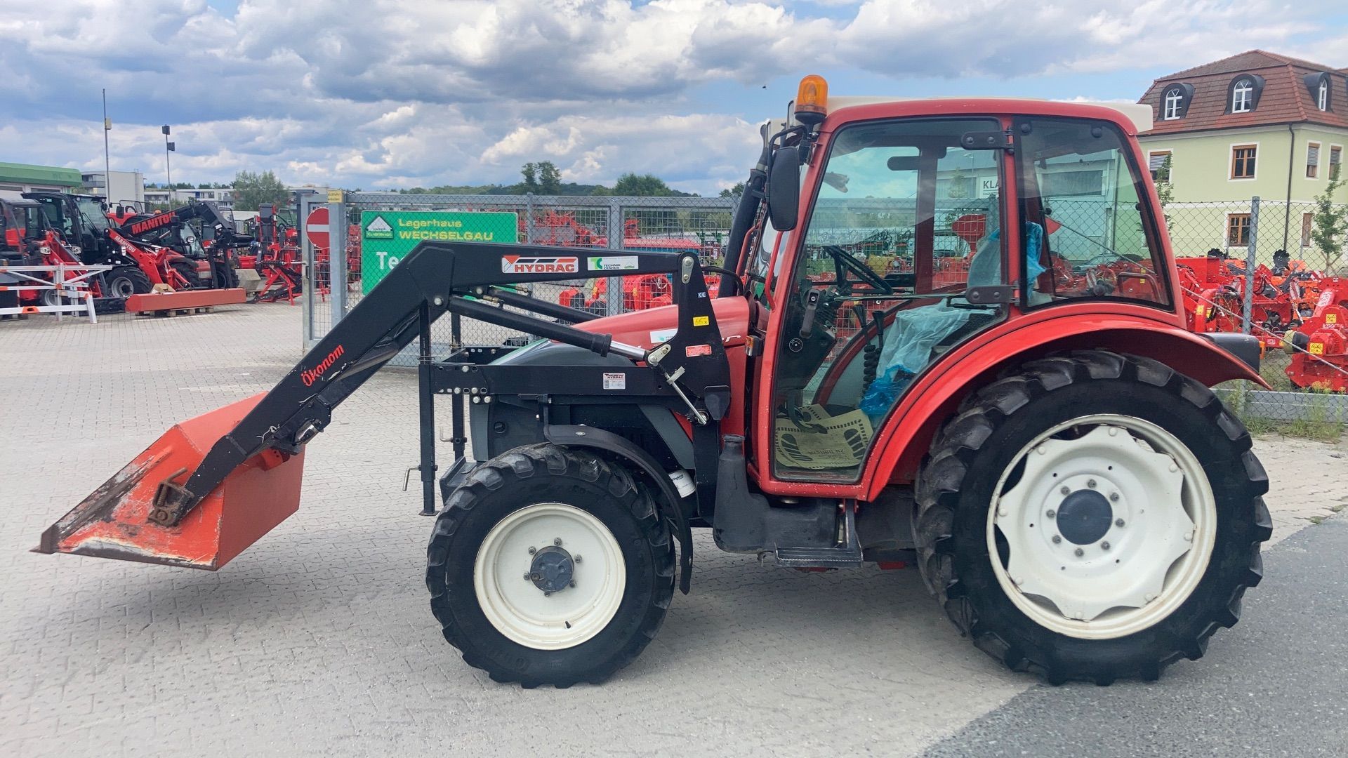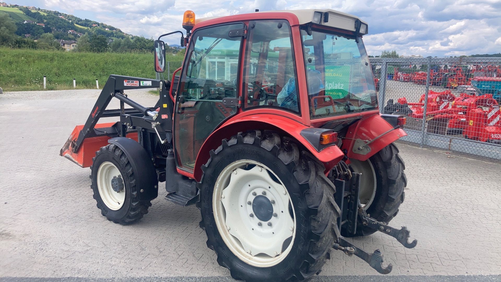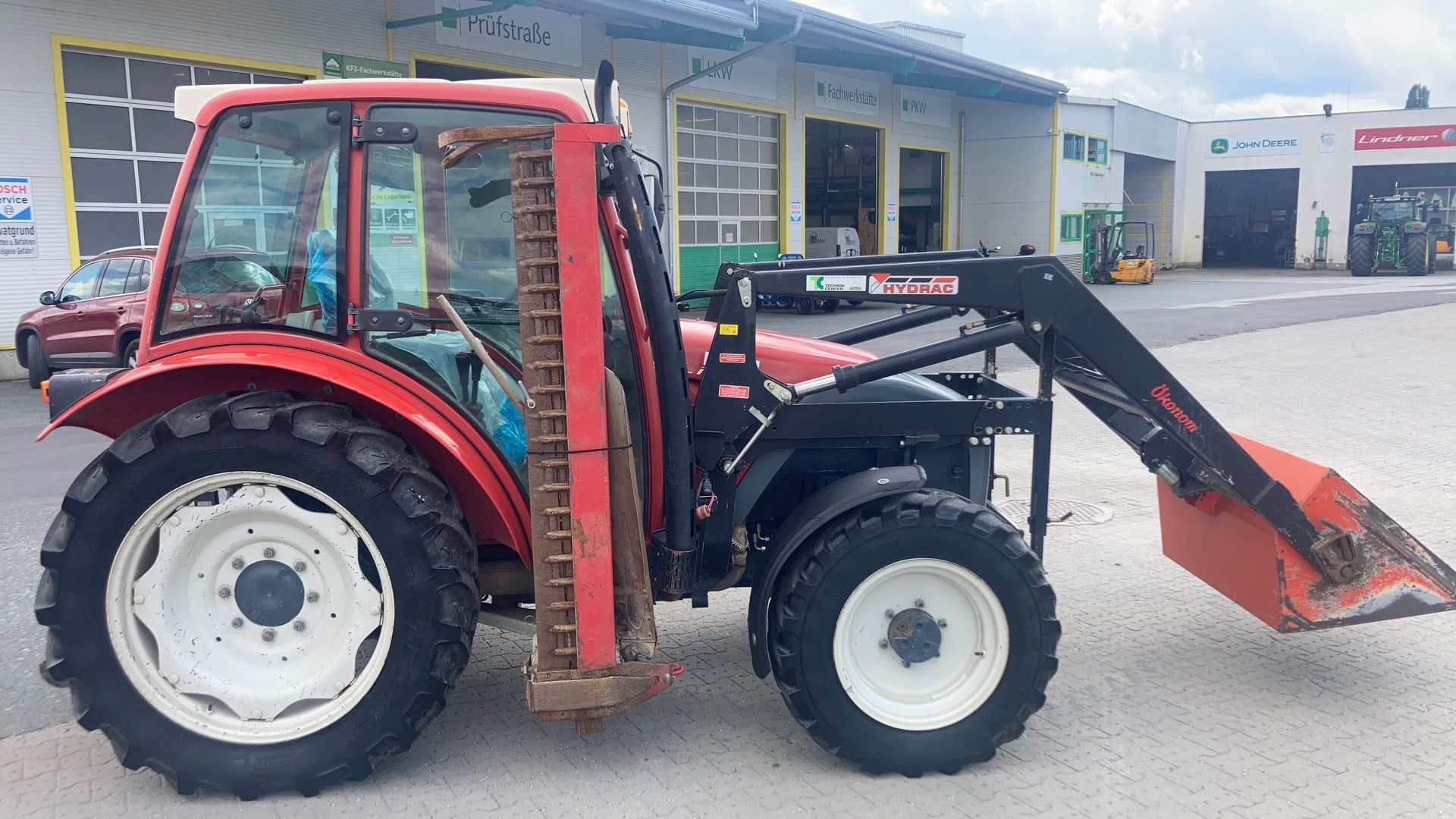 | Free text | Frontlader mit elektrischer Werkzeugausklinkung. Hydraulisches Fingerseitenmähwerk |