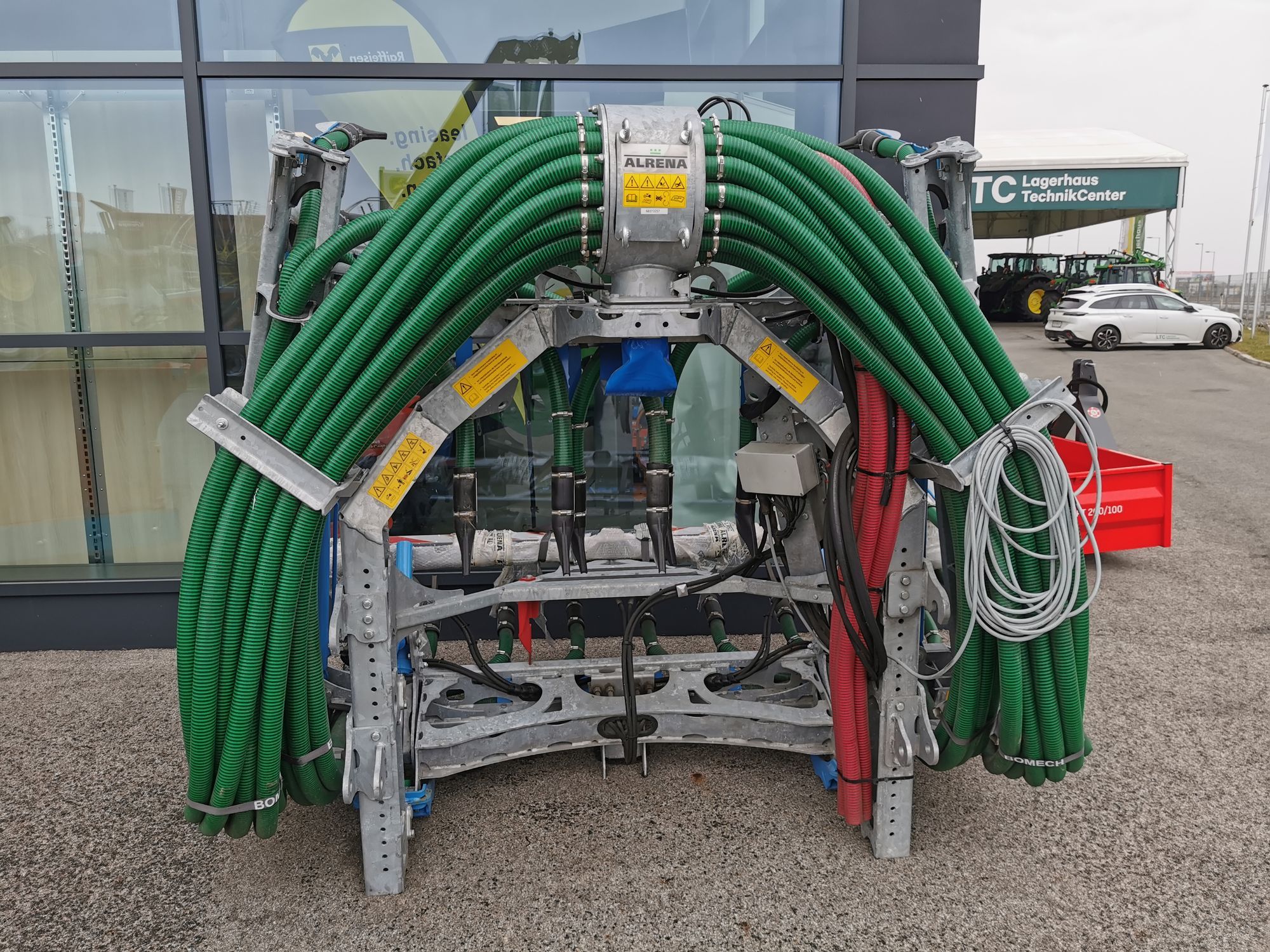 | Campo de texto libre | Bomech Field Contour System, Alrena Exaktverteiler V30 R6. I-Control Steuerung, LED-Beleuchtungssatz, Transportverriegelung, Schnellwechselsystem Universalt + Fanghaken, Gülleversorgung zwischen Fass und Verteiler, Anschluss für Breitverteiler mit Blinddeckel. Abverkauf Ausstellungsgerät. Förderungsfähig!! |