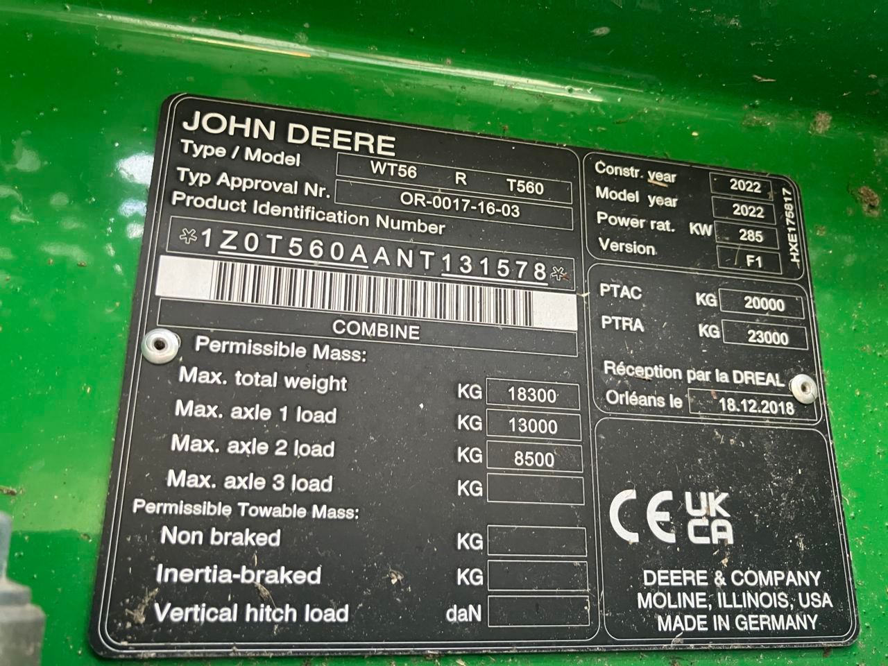 | Type de machine | Moissoneuse-batteuse |