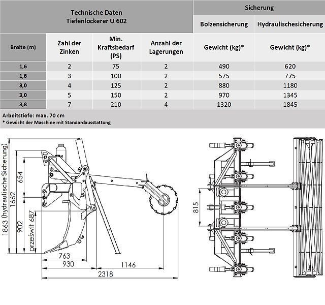 | Modell | Tiefenlockerer U 602 mit Schraubensicherung 1,6m, 3,0 m, 3,8m |