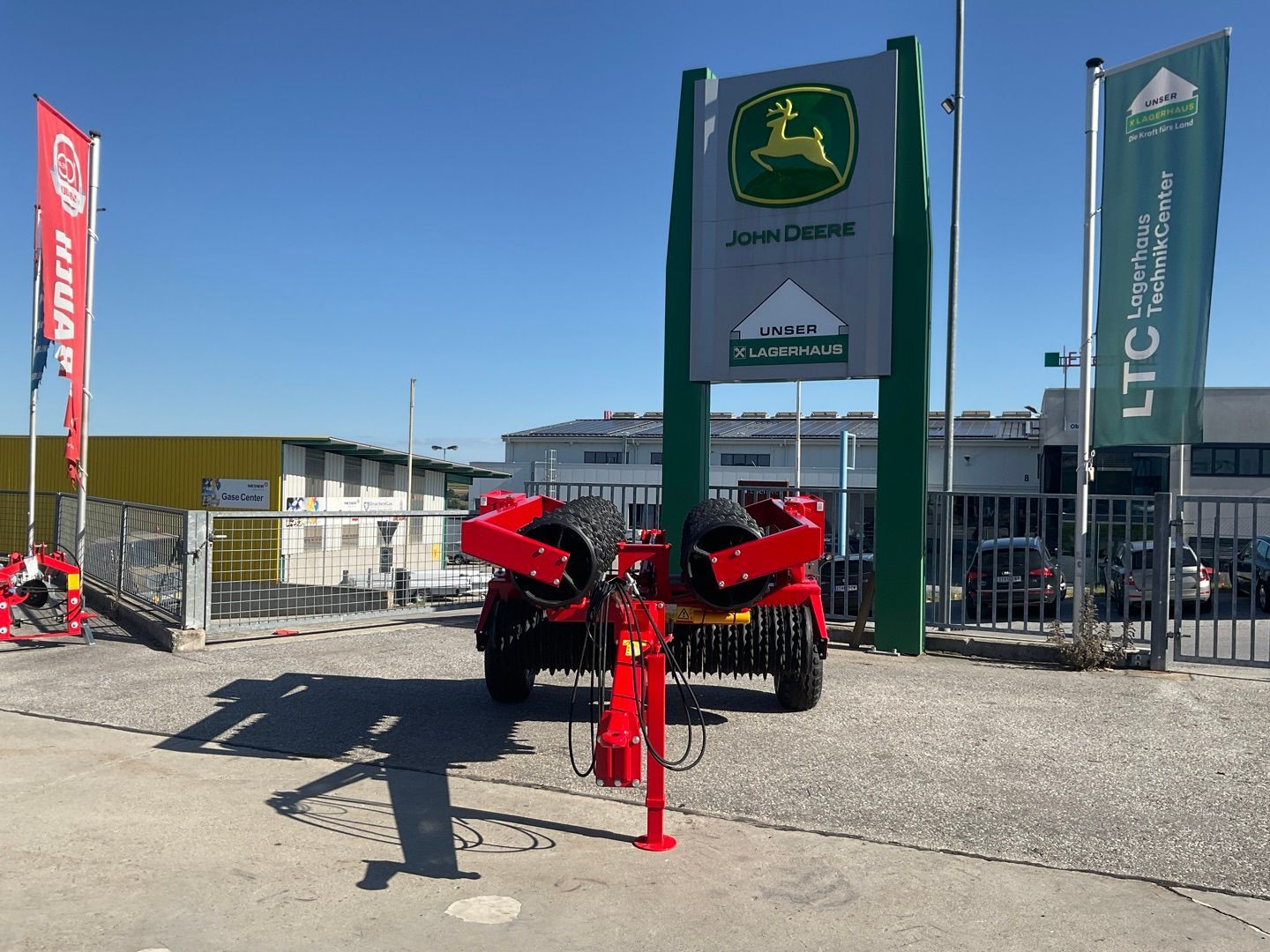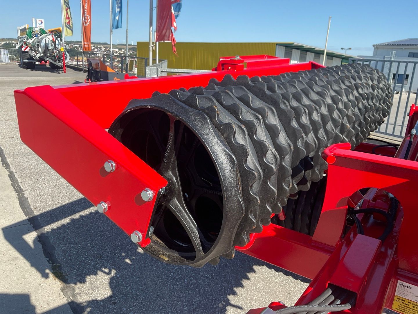 | Dowolne pole tekstowe | Tip Roller 630 mit mittig aufgehängten Seitensegmenten - Mit HEVA SAT-System das sicher stellt, dass das Gewicht vom Mittelteil auf die mittig aufgehängten Seitensegmenten verteilt wird und eine gleichmäßige Rückverfestigung des Bodens auf der ganzen Arbeitsbreite der Walze stattfindet. - --- Ringdurchmesser 510mm mit Cambridge Profil - Beleuchtung - Steinmulde - Gewicht 2.950 kg, 123 Ringe, Welle 60 mm, - Bereifung 11.5/80 x 15.3 - Breie 630cm Optional: - Spring-Board - Messerwalze - Spurlockerer |
